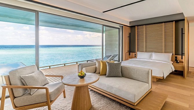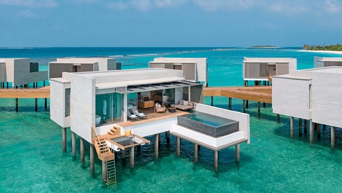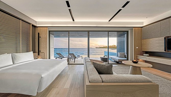 Die Water Villas bieten direkten Zugang zur Lagune, während die Beach Villas diskret in die Vegetation eingebettet sind.