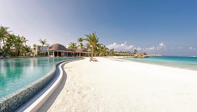 - Luxuriöses Twin-Island-Resort im Nord Ari-Atoll, direkt am weißen Sandstrand der Malediven.