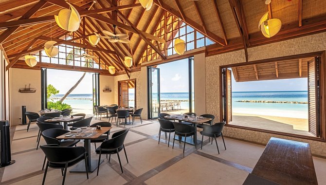 - Einrichtung im zeitgenössisch-maledivischen Stil mit offenem Flair und vielfältigen Erlebnisbereichen.