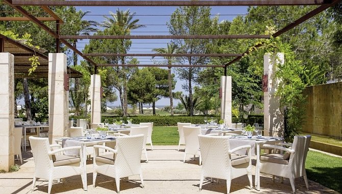 Juniorsuite Typ Superior with Terrace (JSX2), Juniorsuite, Mindestalter im Zimmer: 18 Jahre, im Nebengebäude, Landblick, Blick auf PARQUE NATURAL D’ES TRENC, ca. 33 m², letzte Komplettrenovierung 2014, Gesamtanzahl der Räume in diesem Zimmertyp: 1, Aufteilung wie folgt: kombiniertes Wohn-/Schlafzimmer, Klimaanlage: zentral gesteuert, Heizung: zentral gesteuert, Fußboden: Fliesenboden, Safe, Schreibtisch, Kaffeemaschine, Telefon, Internet: WLAN/WiFi: ohne Gebühr, Fernseher: Sat-TV, Radio, Roomservice: täglich, gegen Gebühr, Regendusche, Badewanne, WC, Bademantel, Slipper, Föhn, Kosmetikspiegel, Terrasse: mit Liegen