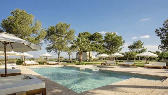 Gran Villa Suite (VIG1), Villa, Mindestalter im Zimmer: 18 Jahre, Neubau, Gartenblick, Landblick, Blick auf PARQUE NATURAL D’ES TRENC, ca. 160 m², letzte Komplettrenovierung 2015, Gesamtanzahl der Räume in diesem Zimmertyp: 3, Aufteilung wie folgt: kombiniertes Wohn-/Schlafzimmer, Wohnzimmer, 1 Schlafzimmer, 2 King Size Betten, Klimaanlage: individuell regelbar, kalt, warm, Heizung: individuell regelbar, Fußboden: Fliesenboden, Safe, Sitzecke, Sofa, Kaffeemaschine, Esstisch, Minibar: gegen Gebühr, Softdrinks: gegen Gebühr, Wasser: ohne Gebühr, alkoholische Getränke: gegen Gebühr, Snacks: gegen Gebühr, Minibarauffüllung: täglich, Telefon, Internet: WLAN/WiFi: ohne Gebühr, Fernseher: im Wohnbereich, im Schlafzimmer, deutsches Programm, Sat-TV, Radio, Roomservice: gegen Gebühr, Reinigungsservice: täglich, ohne Gebühr, Dusche, Regendusche, Badewanne, WC, Bademantel, Slipper, 2 Bäder, Föhn, Kosmetikspiegel, Terrasse: mit Liegestühlen, mit Sitzgelegenheit, mit direktem Poolzugang, mit Private Pool, mit Privat-Garten