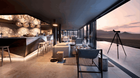 - Architektur aus Stein, Glas und Metall, harmonisch in die Wüstenlandschaft eingebettet